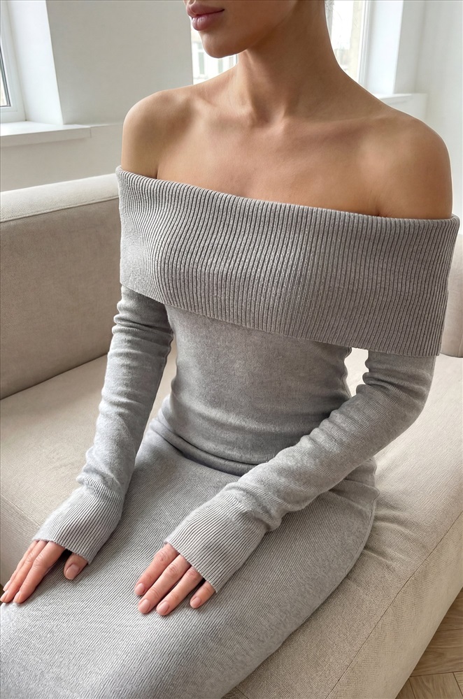 Женское вязаное платье с открытыми плечами Happyfox 10 фото