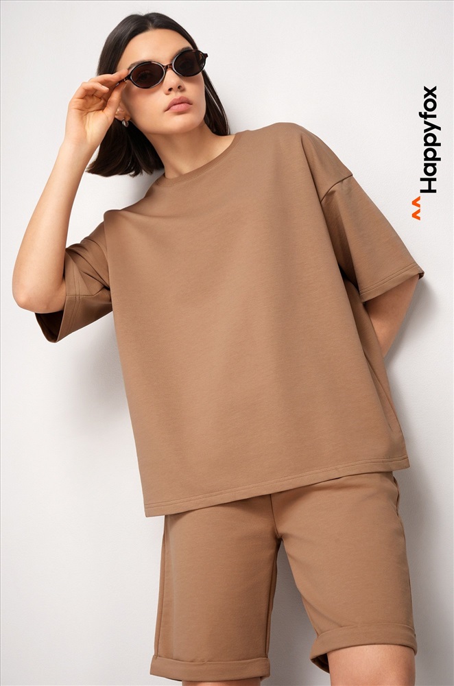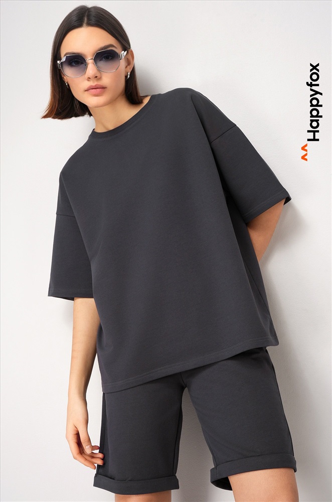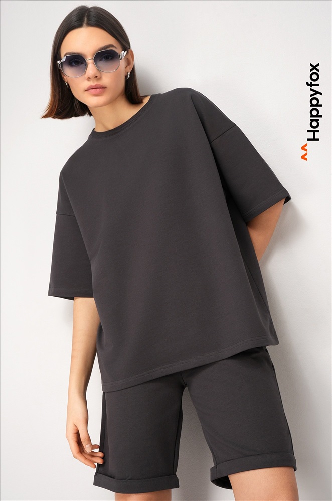 Женская футболка оверсайз из футера двухнитки Happyfox 10 фото