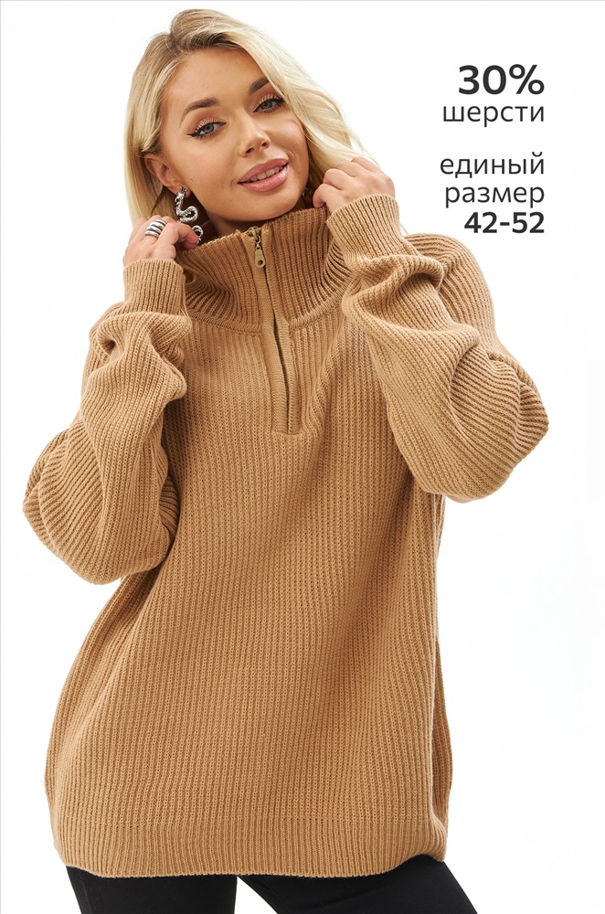 Женский свитер оверсайз с воротником на молнии Happyfox 10 фото