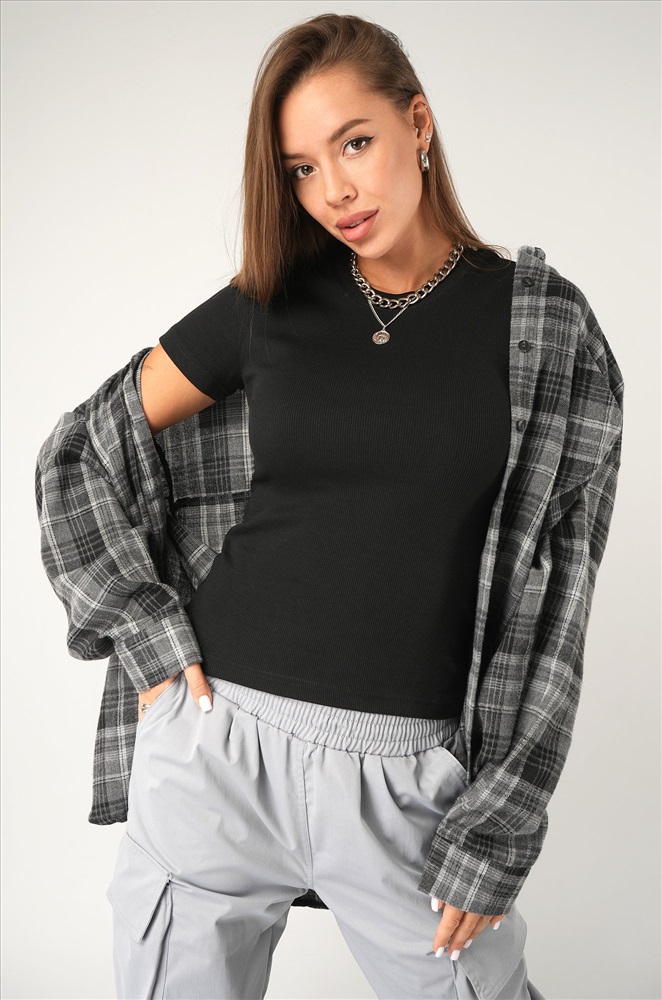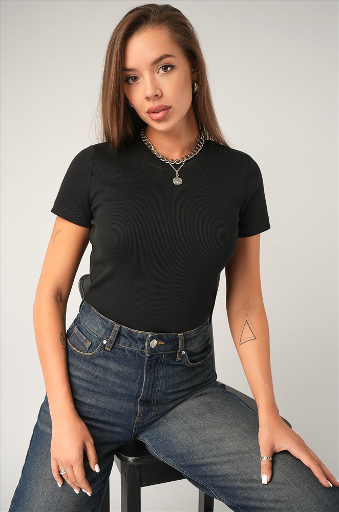 Женская водолазка в рубчик с коротким рукавом Happyfox 7 фото