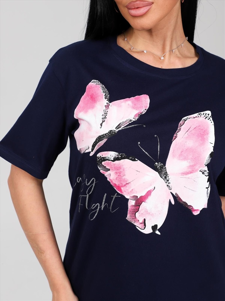 Классная майка, в размер, у меня 46р, купила 48р, чтоб не в обтяжку. материал не сильно тянется. Спасибо организатору.