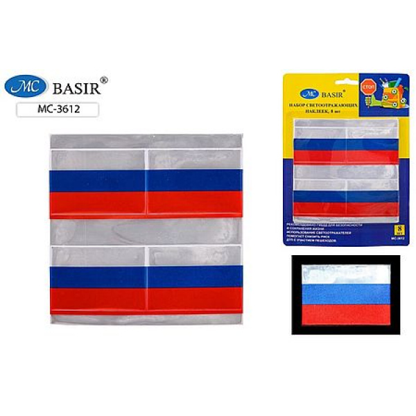 Набор светоотражающих фигурных наклеек "ФЛАГ РОССИИ" 8 шт. МС-3612 Basir