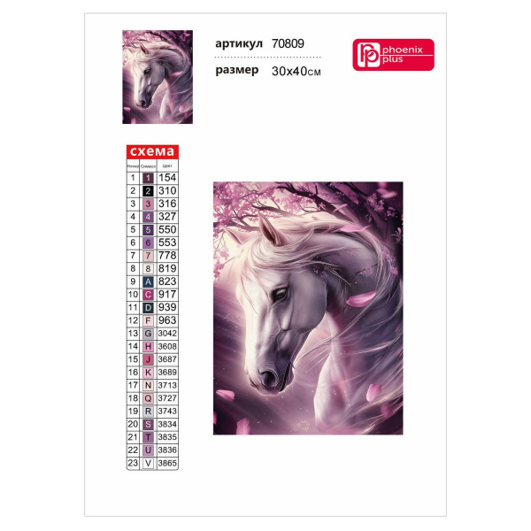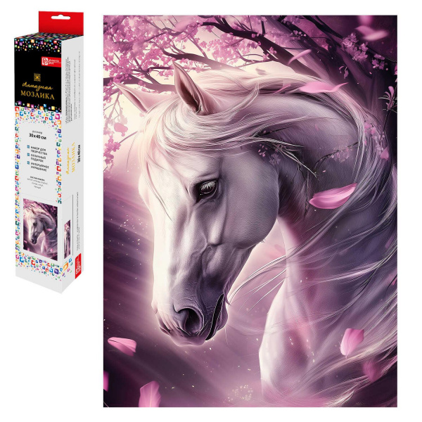 Алмазная мозаика по номерам 30х40 см "ЛОШАДЬ И САКУРА" квадратные стразы 70809 Феникс 7 фото