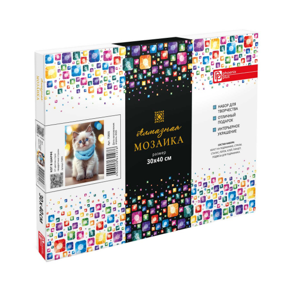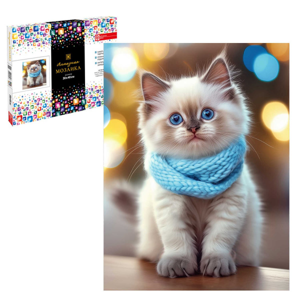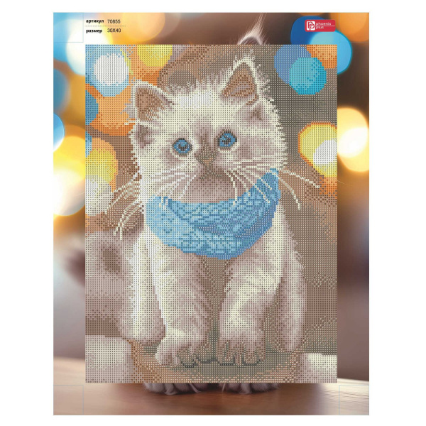 Алмазная мозаика по номерам 30х40 см (НА ПОДРАМНИКЕ) "КОТ В ШАРФЕ" квадратные стразы 70855 Феникс 7 фото