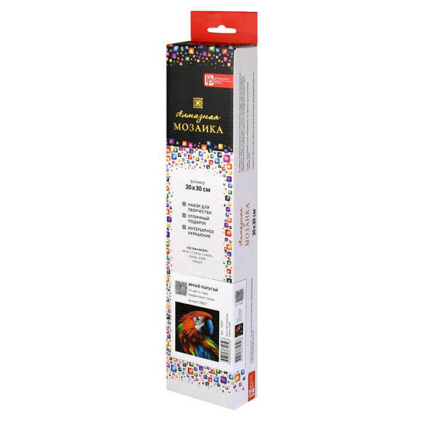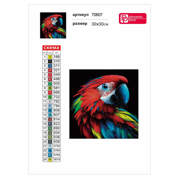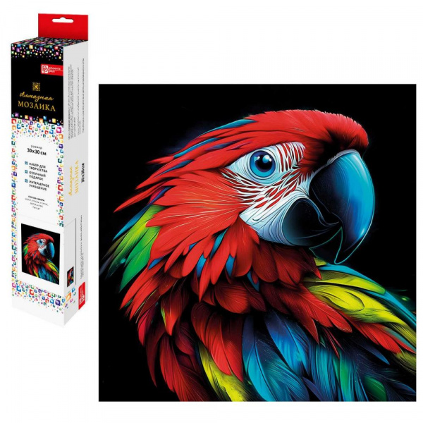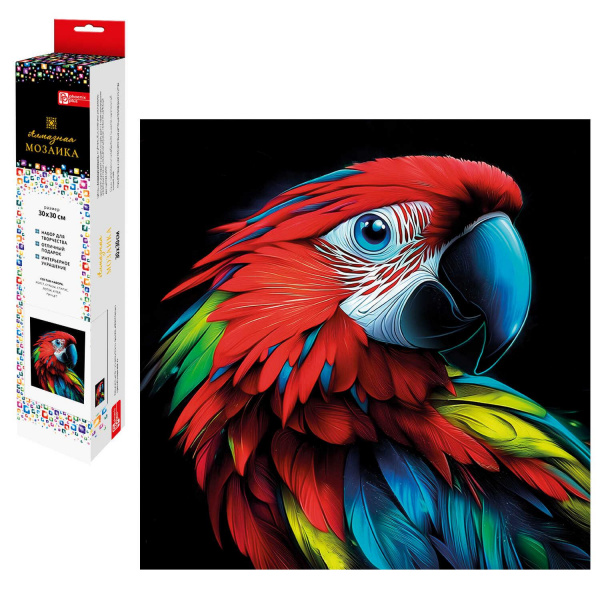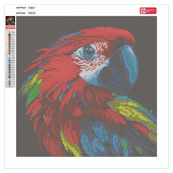 Алмазная мозаика по номерам 30х30 см "ЯРКИЙ ПОПУГАЙ" квадратные стразы 70807 Феникс 7 фото