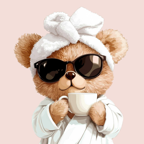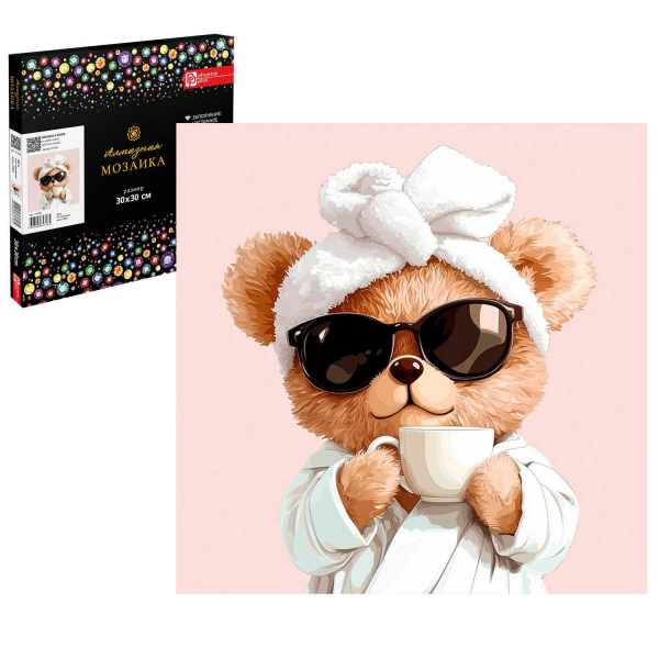 Алмазная мозаика по номерам 30х30 см (НА ПОДРАМНИКЕ) "МИШКА С КОФЕ" Частичная выкладка 71439 Феникс 3 фото