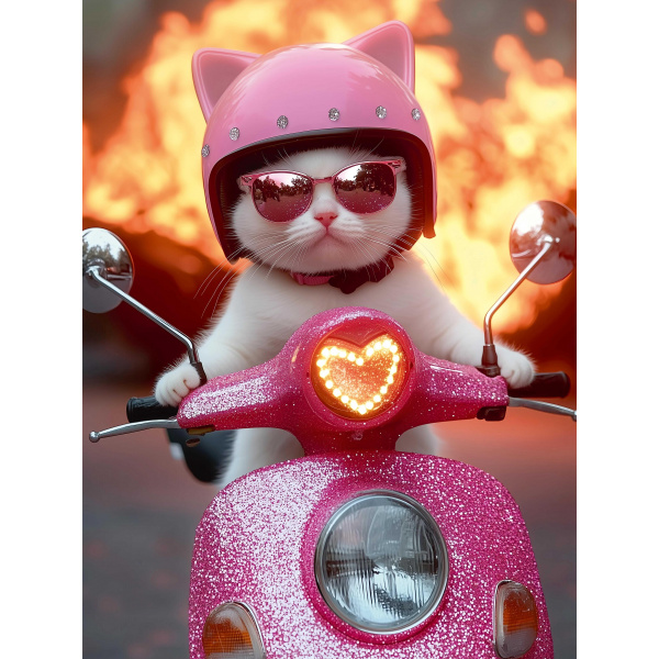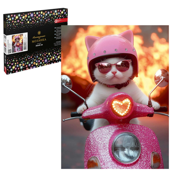 Алмазная мозаика по номерам 30х40 см (НА ПОДРАМНИКЕ) "КОТ НА МОТОЦИКЛЕ" Частичная выкладка 71444 Феникс 3 фото
