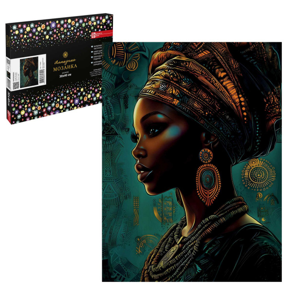 Алмазная мозаика по номерам 30х40 см (НА ПОДРАМНИКЕ) "АФРИКАНКА" Частичная выкладка 71443 Феникс 3 фото