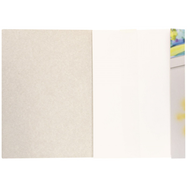 Скретчбук с желтоватымм листами, снизу обложка из жёсткого картона.