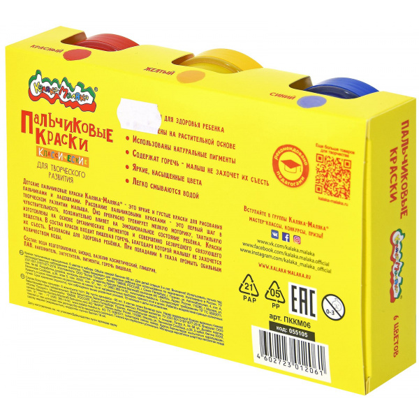 Краски пальчиковые 6цв 60 мл ПККМ06 Каляка-Маляка 4 фото