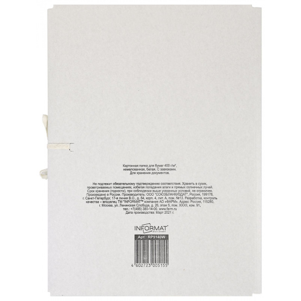 Папка для бумаг с завязками 400г/кв.м RP9140W inФОРМАТ 4 фото