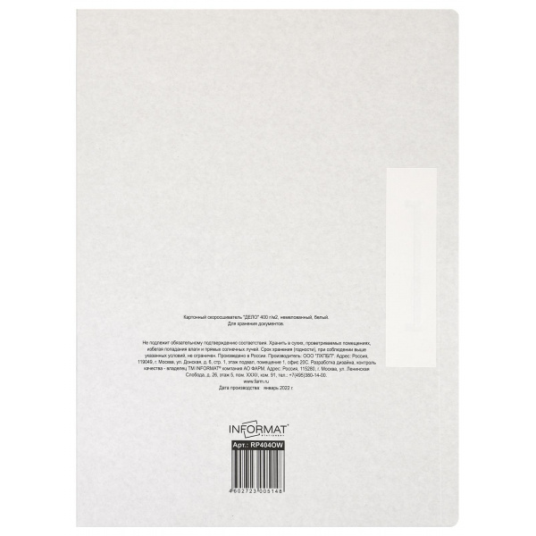 Скоросшиватель бумажный  А4"ДЕЛО" 280 г/кв.м немелованный белый арт. RP4028W inФОРМАТ