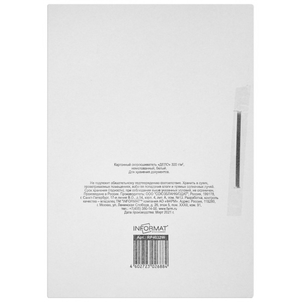 Скоросшиватель бумажный (без замка) А4"ДЕЛО" 320 г/кв.м мелованный LP0032W inФОРМАТ 3 фото
