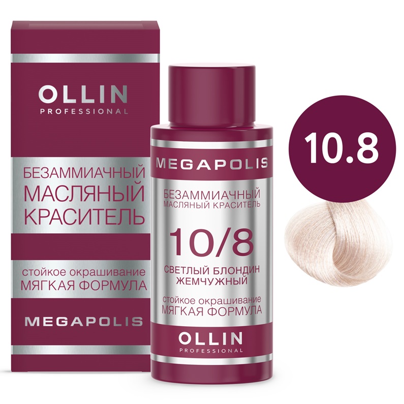 OLLIN Megapolis Безаммиачный масляный краситель 10/8 светлый блондин жемчужный 50 мл