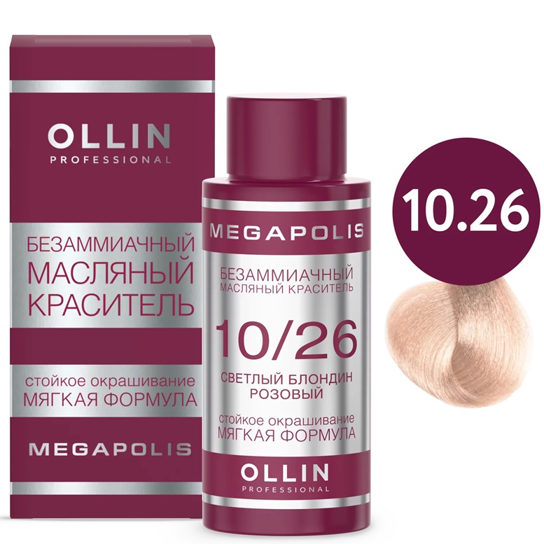 OLLIN Megapolis Безаммиачный масляный краситель 10/26 светлый блондин розовый 50 мл
