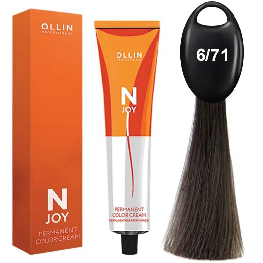 OLLIN N-JOY Пермаментная крем-краска 6/71 темно-русый коричнево-пепельный 100 мл