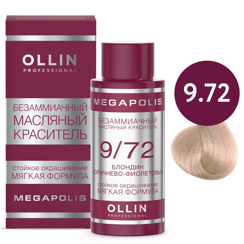 OLLIN Megapolis Безаммиачный масляный краситель 9/72 блондин коричнево-фиолетовый 50 мл