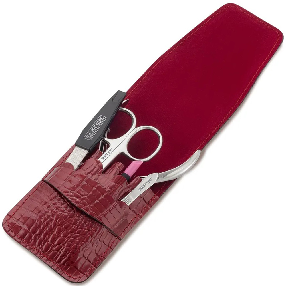 Silver Star Маникюрный набор «МН 05-6» Красный 5 предметов натур. кожа на кнопке 2 фото