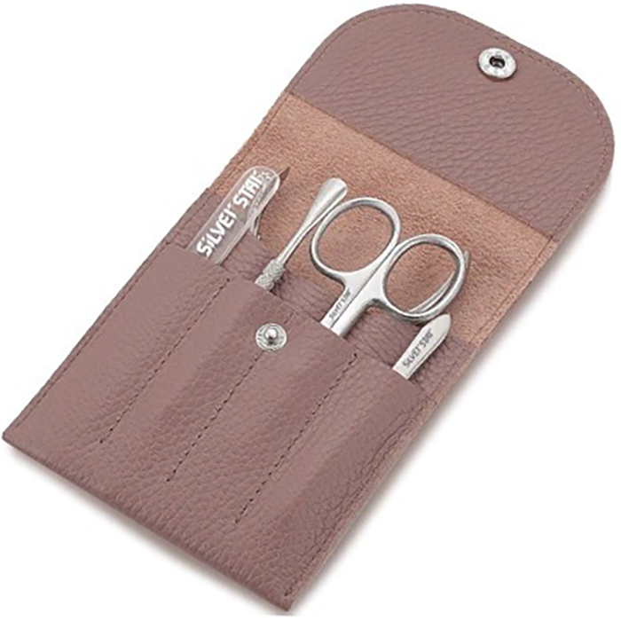 Silver Star Маникюрный набор «МН 05-4» Розовый перламутр 5 предм. натур. кожа на кнопке 2 фото
