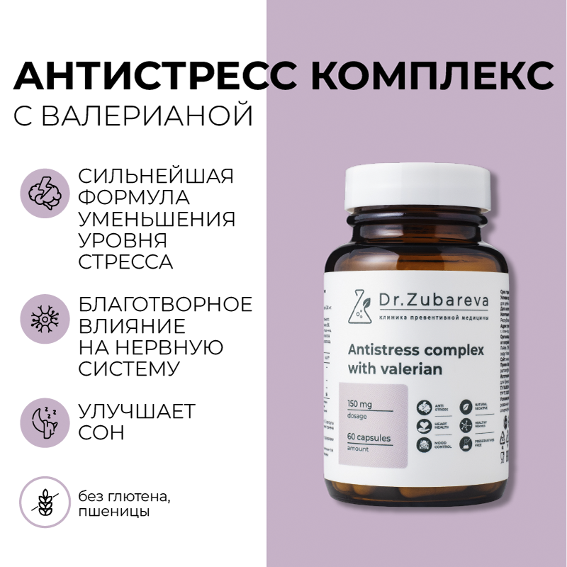 Dr. Zubareva Lab Антистресс комплекс с валерианой, 60 капсул