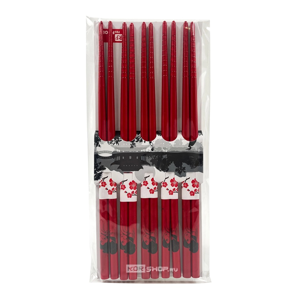 Палочки бамбуковые для еды красные (5 пар) Премиум, Китай