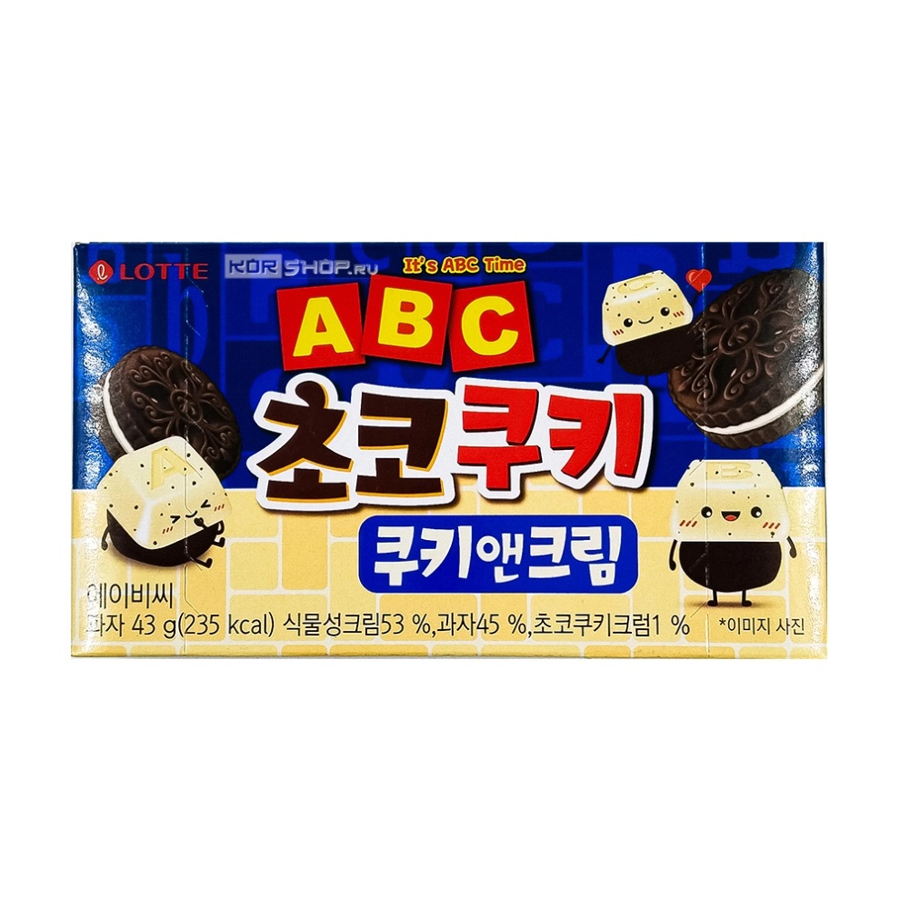 Печенье шоколадное с кремом ABC Choco Cookie & Cream Lotte, Корея, 43 г Акция