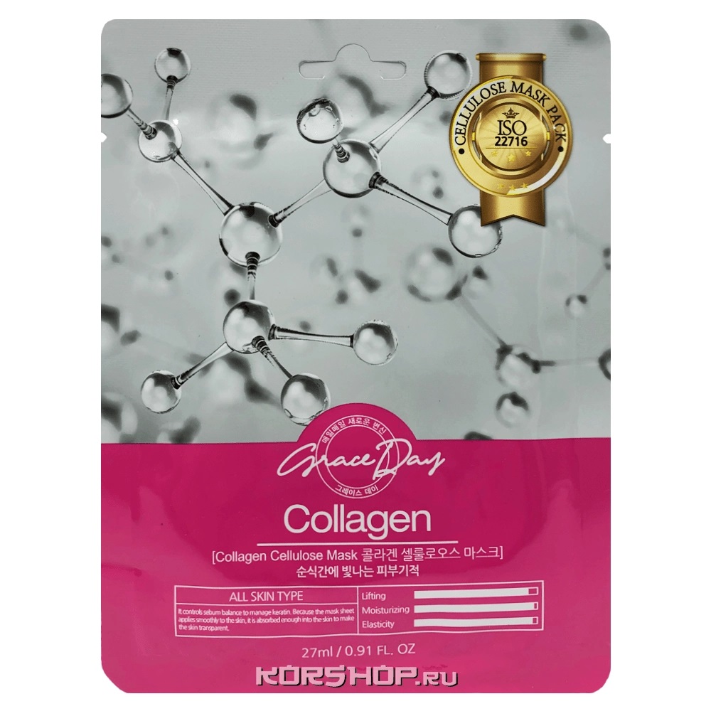 Тканевая маска для лица с коллагеном Grace Day, Корея, 27 мл Акция