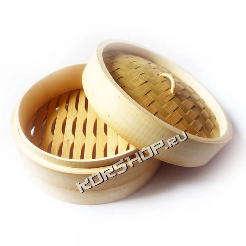 Бамбуковая пароварка двойная 21 см (2 поддона, 1 крышка), Китай Акция
