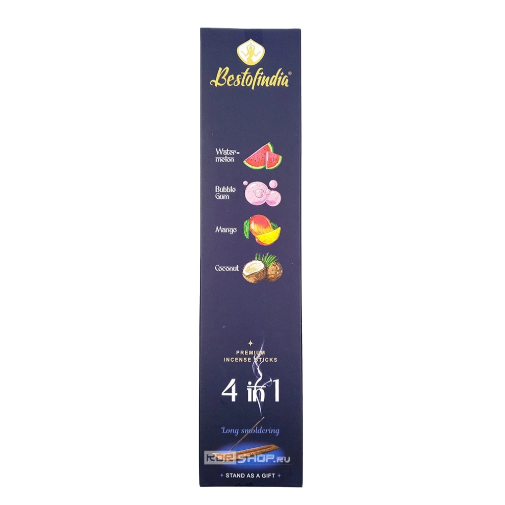 Ароматические палочки 4 в 1 (Арбуз, Бабл Гам, Манго, Кокос) с подставкой Bestofindia, Индия, 20 шт.