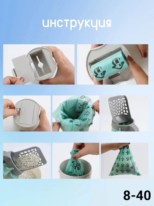 Совок для кошачьего туалета с контейнером и лопаткой #22975096 10 фото