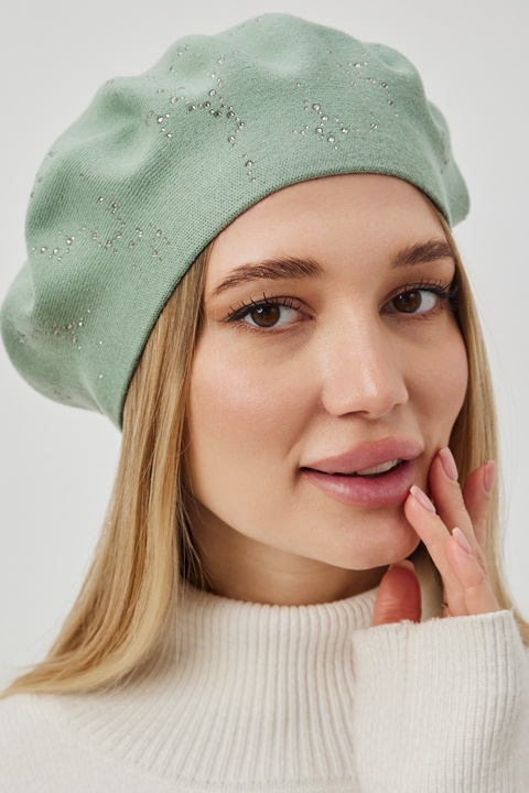 Шапка зимняя, цвет изумруд, на мой размер головы 59см села хорошо. Выбирала под цвет пуховика. Мне понравилась. Спасибо❤️ организатору.