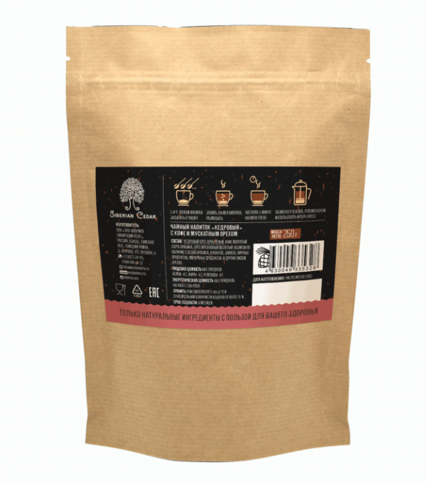 Напиток кедровый Сибирский кофе ЛАТТЕ / 150 г / дой-пак / Сам бы ел