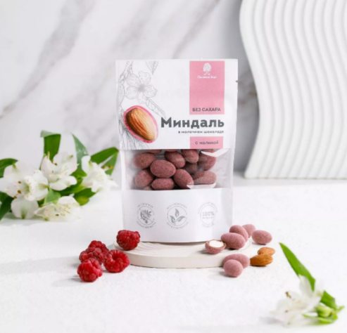 Миндаль в горьком шоколаде без сахара с корицей / 60 г / дой-пак / ТМ Сибирский кедр