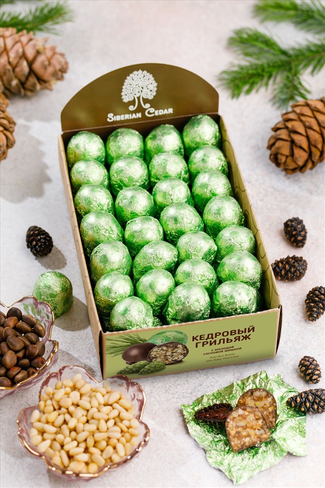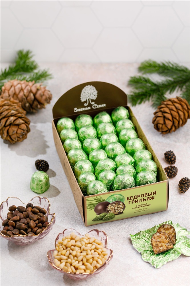 Кедровый грильяж с сосновой шишкой / шоу-бокс / 540 г / ТМ Сибирский кедр 3 фото