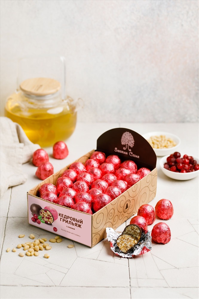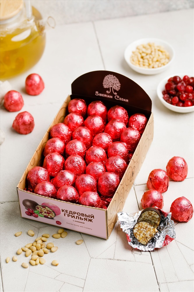 Кедровый грильяж "с Брусникой" в шок.глазури / гофрокороб / 1000 гр / Солнечная Сибирь
