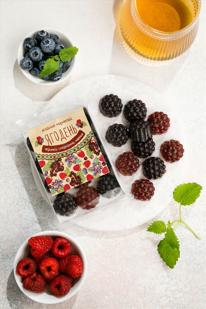Мармелад Ягодень Ассорти / черника, смородина, малина / подложка / 165 г / ТМ Сибирский кедр 4 фото
