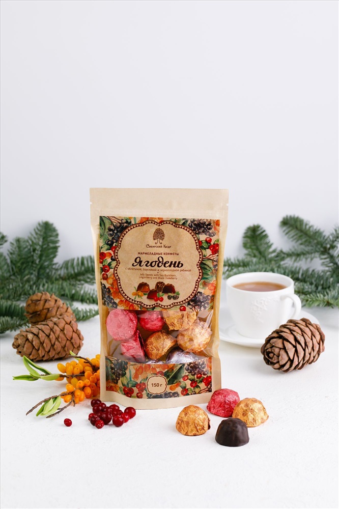 Мармеладные конфеты Ягодень ассорти / крафт-пакет / 150 г / ТМ Сибирский кедр 3 фото