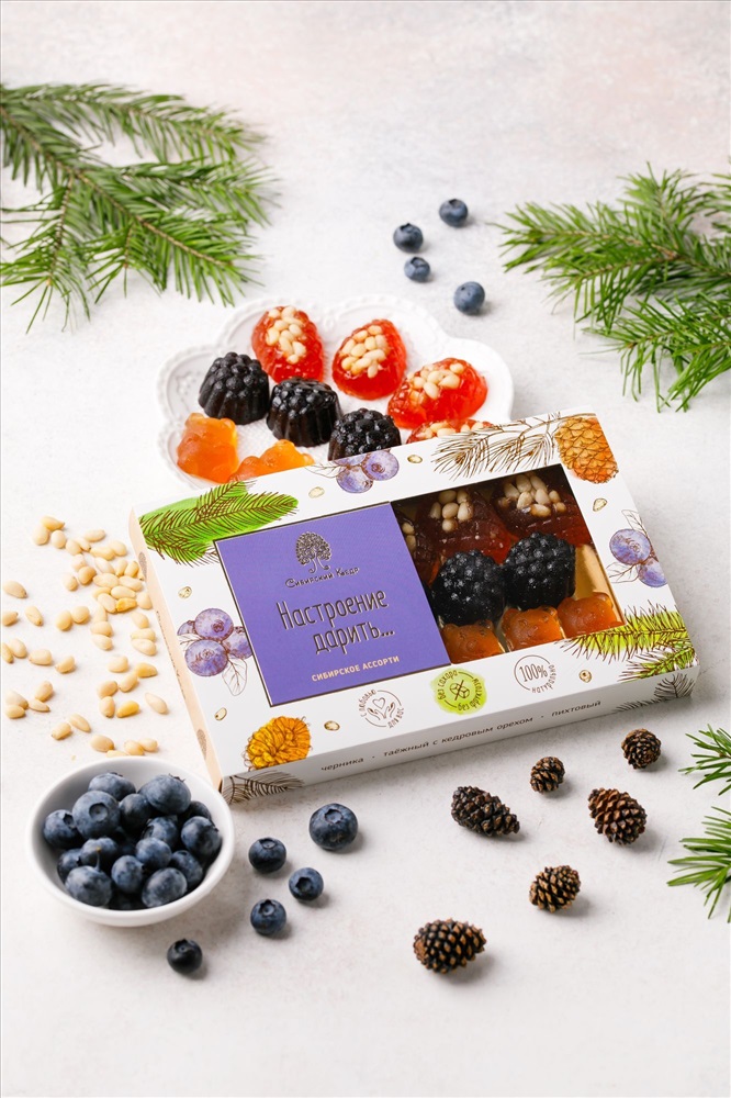 Кедровая комета Ассорти / клюква земляника, шишка, классика / шоу-бокс / 540г / ТМ Сибирские конфеты 7 фото