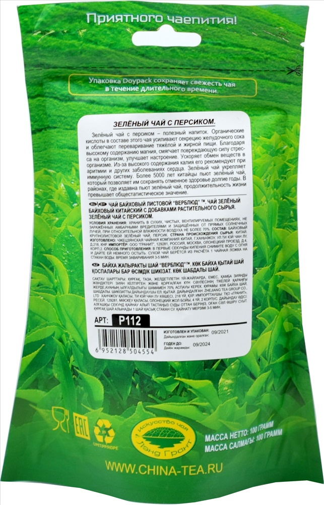 Верблюд. Зеленый с жасмином 100 гр. мягкая упаковка