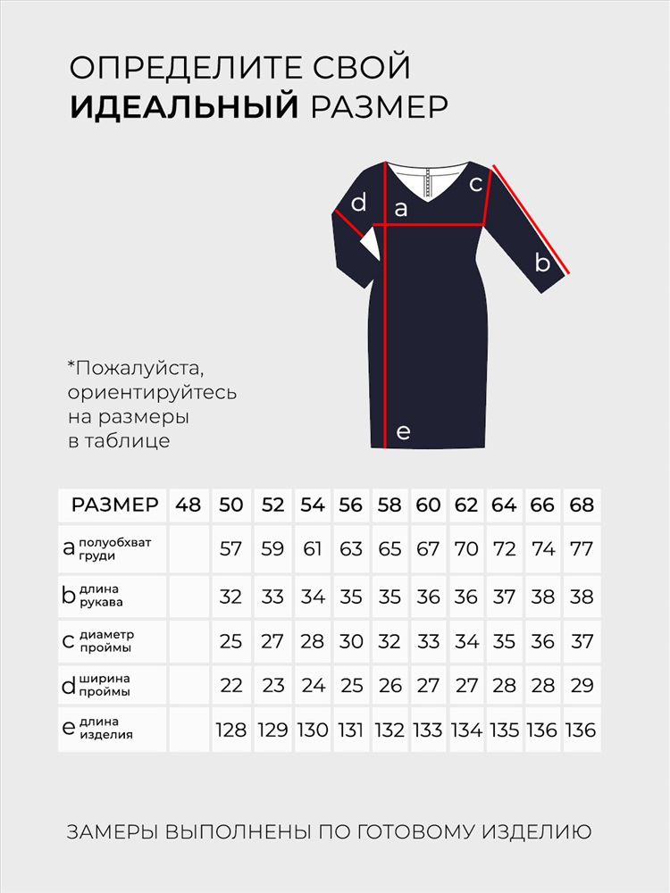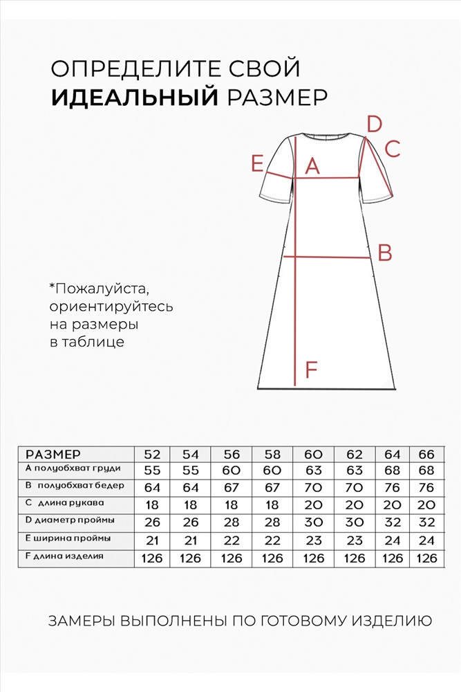 РАЗМЕРНАЯ СЕТКА ПРОИЗВОДИТЕЛЯ