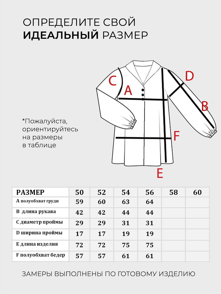 Размер: 50, 52, 54, 56, 58, 60, 62, 64, 66, 68