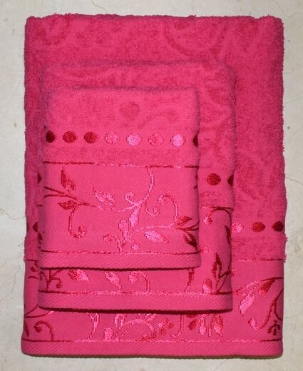 Набор махровых полотенец жаккард "Подарочный"-малина 3 шт (40*70 см, 50*90 см,70*130 см) в индив. упак. хлопок 100%
