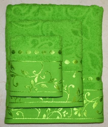 Набор махровых полотенец "Трио"-зеленый 3 шт (40*70 см, 50*90 см,70*130 см) в индив. упак. хлопок 100%