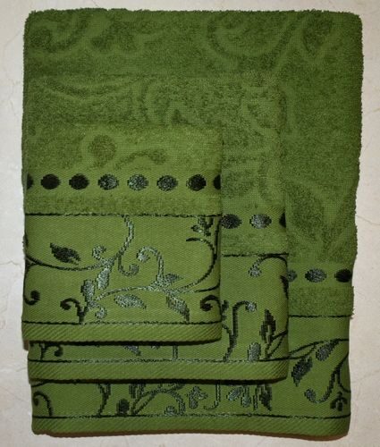 Набор махровых полотенец жаккард "Подарочный"-оливковый 3 шт (40*70 см, 50*90 см,70*130 см) в индив. упак. хлопок 100%