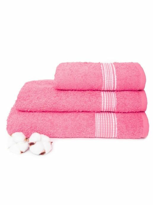 Набор махровых полотенец "Трио"-розовый 3 шт (40*70 см, 50*90 см,70*130 см) в индив. упак. хлопок 100% 2 фото