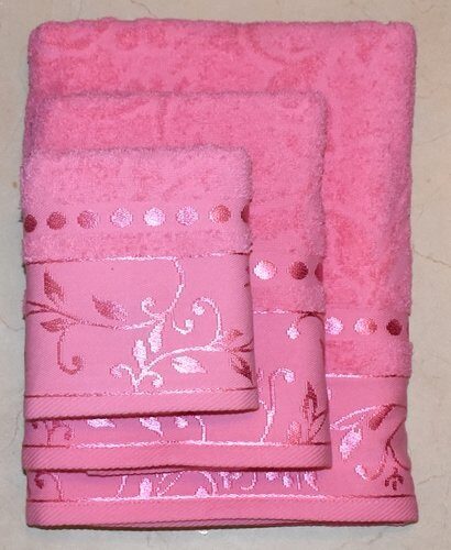 Набор махровых полотенец жаккард "Подарочный"-розовый 3 шт (40*70 см, 50*90 см,70*130 см) в индив. упак. хлопок 100%