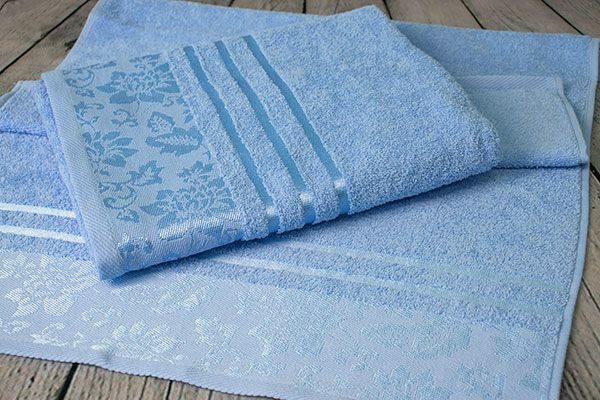 Набор махровых полотенец жаккард "Подарочный"-бледно-васильковый 3 шт (40*70 см, 50*90 см,70*130 см) в индив. упак. хлопок 100%