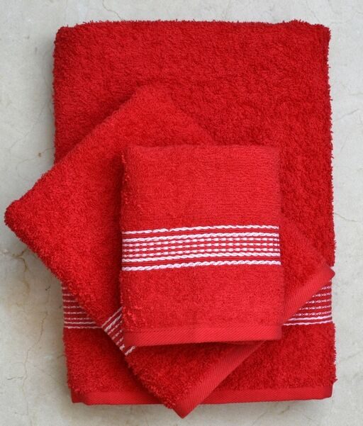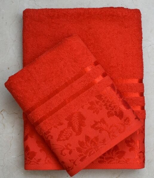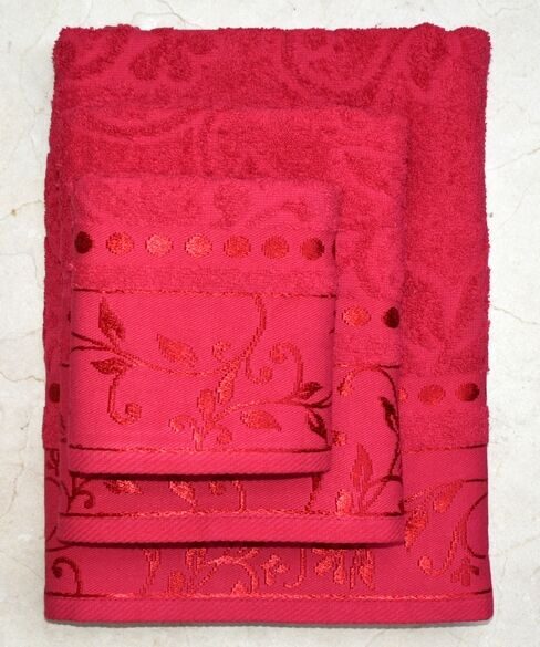Набор махровых полотенец "Трио"-красный 3 шт (40*70 см, 50*90 см,70*130 см) в индив. упак. хлопок 100%