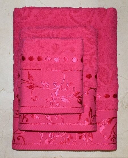 Набор махровых полотенец жаккард "Подарочный"-фуксия 3 шт (40*70 см, 50*90 см,70*130 см) в индив. упак. хлопок 100% 2 фото