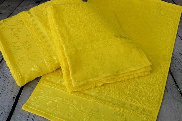 Набор махровых полотенец жаккард "Подарочный"-желтый 3 шт (40*70 см, 50*90 см,70*130 см) в индив. упак. хлопок 100%